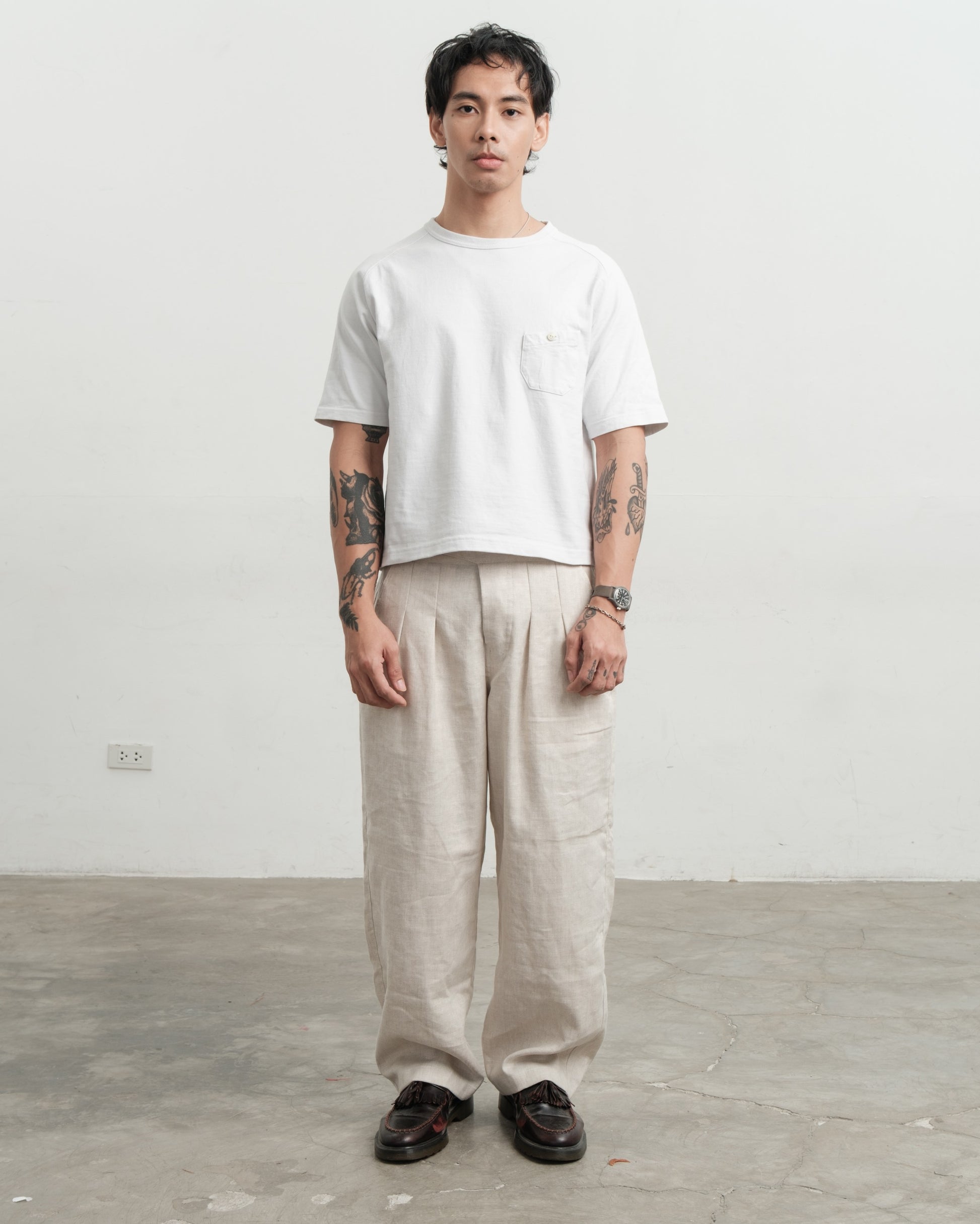 Crafted from linen, featuring a button fly with donut buttons, and linen pocket lining. Similar to our previous releases in Raw Denim but with a mid-rise and a straight fit.